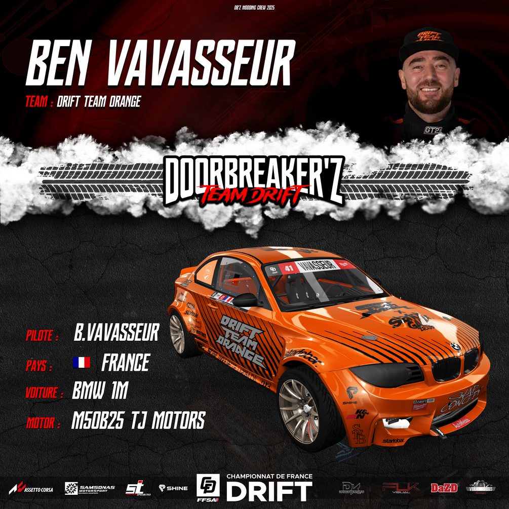 DOORBREAKERZ est bien plus qu’une simple équipe : c’est une identité, un état d’esprit forgé par la passion du drift, la précision du pilotage et l’envie constante de repousser les limites. Fondée autour de valeurs fortes — authenticité, performance et créativité #AssettoCorsa